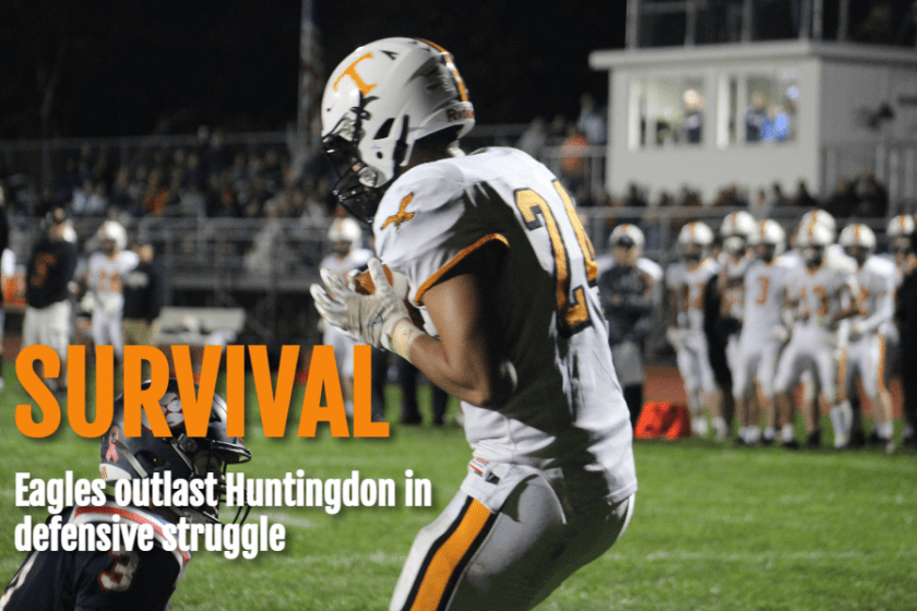That’s the situation Golden Eagles defenders found themselves in last night at War Vets Field late in a game against Huntingdon that was much closer than it was supposed to be. With Tyrone ahead 14-6, the one-win Bearcats had the ball at midfield with just over two minutes left and the opportunity to tie a heavily favored rival was out there on the table.
