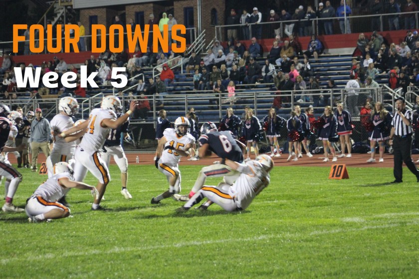 While the Golden Eagles’ offense failed to reach 200 yards in total offense for the first time this season, their defense was as strong as ever, stopping nine plays in Huntingdon’s backfield and causing three fumbles, one of which Tyrone recovered.