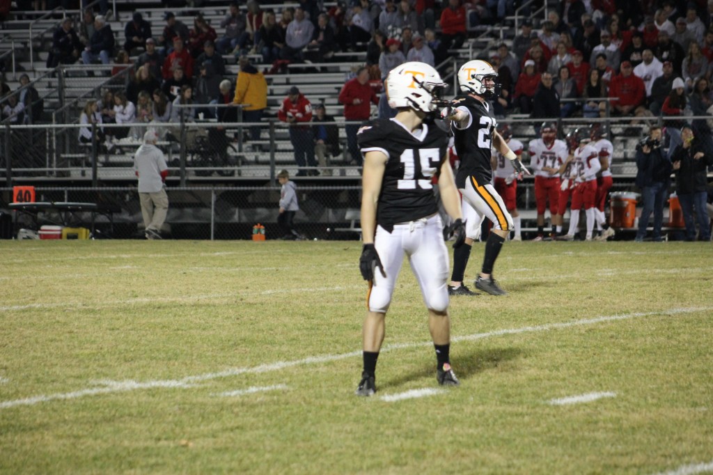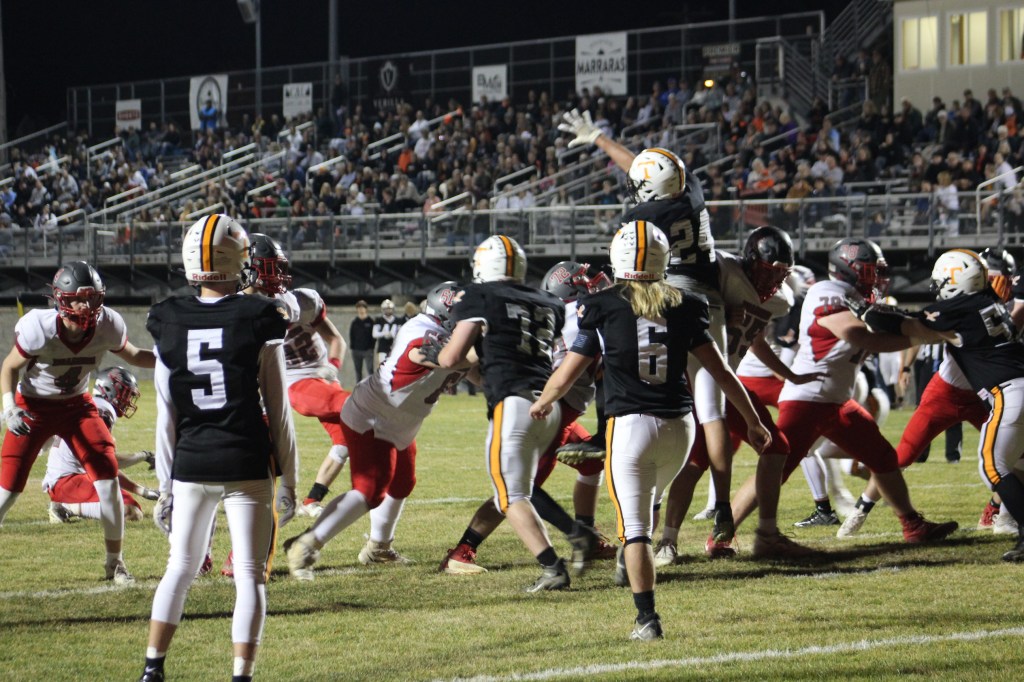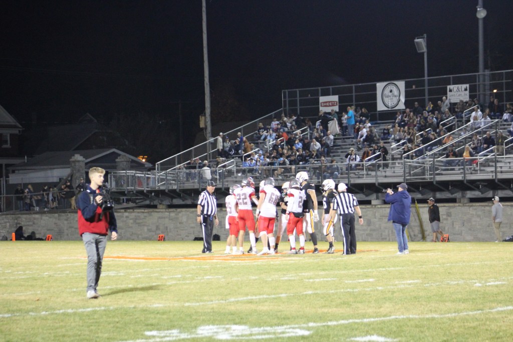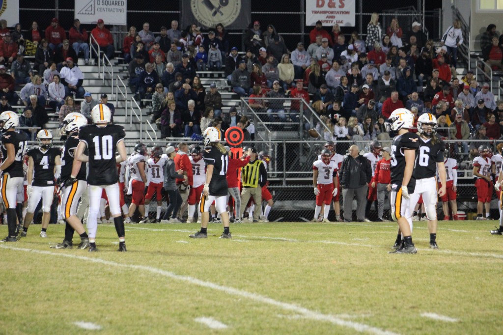 Braden Ewing, who went without a tackle for loss for the first time this season, tipped Hoenstine’s pass on the play, and Tyrone’s sideline unanimously agreed the block in question was legal, but nonetheless it set up the Eagles at the 43 and they could make it no further than the 24 before turning the ball over on downs.