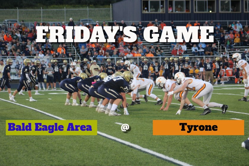 Last Time Out: TYRONE – lost to Central 13-7 at Gray-Veterans Memorial Field last Friday. The Golden Eagles penetrated Central’s 30 four times without scoring points and turned the ball over 3 times. Ashton Walk completed 16 of 34 passes for 208 yards and a 55-yard touchdown to Seth Hoover, but Dragon quarterback Eli Muthler ruled the day. He completed 16 of 35 passes for 217 yards and one touchdown and ran for a 25-yard score at the start of the second half which proved to be the game winner. BALD EAGLE AREA – defeated Penns Valley 49-7 at Alumni Stadium in Wingate. Carson Nagle completed 26 of 37 passes for 426 yards and four touchdowns. Nine of his throws went to Kollin Cunningham, who had 128 receiving yards and a score.