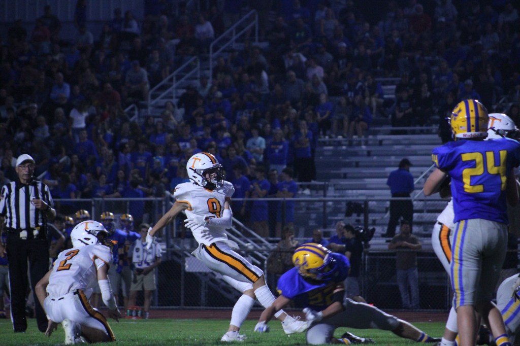 In his absence, Tyrone went to Seth Hoover, and the senior responded with the best game of his career, running for 107 yards on 17 carries. On the Eagles second possession, he carried for 69 yards, pushing Tyrone from the shadows on their endzone at the 2, where the series started, to the game’s first score – a 9-yard run with :03 left in the first quarter that gave Tyrone a 7-0 lead.