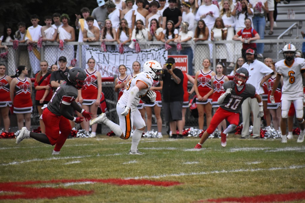 But even without much going on on offense in the third and fourth quarters, Tyrone’s defense had things under control. Four Dragons possessions in the third yielded Parson’s first interception, a fumble recovery by Emigh, and a pair of punts. The fourth started in much the same way, with Emigh intercepting backup quarterback Carter Schenk, who had come on after Muther left the game with an injury.
