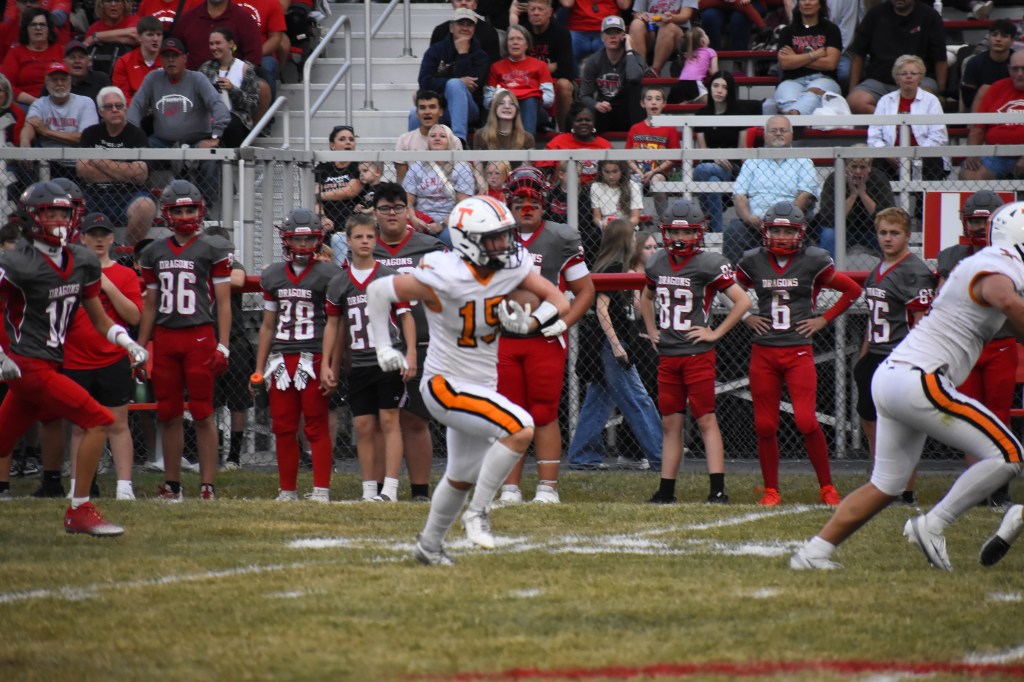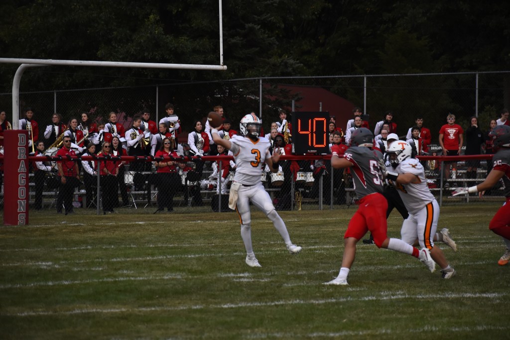 The Dragons answered with a 10-play drive that went from its own 20 to Tyrone’s 19, but on fourth-and-5 Jesse Muthler’s pass to the endzone went incomplete, giving Tyrone the ball back with 6:07 until halftime.