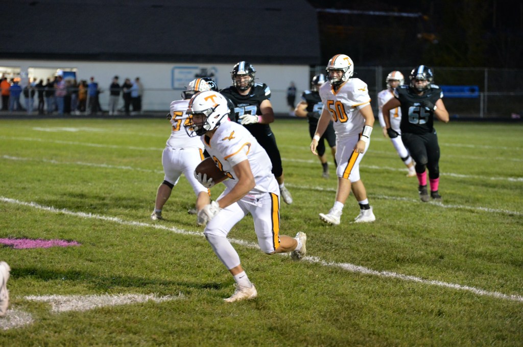 The Panthers’ ensuing possession lasted just 5 plays and was sprung mainly on the efforts of backup quarterback Evan Latterner, who completed a 19-yard pass to Blake Lily, scrambled for 21 yards to Tyrone’s 35, and then completed another pass to Blake Nadolsky to get the ball to the 23. On the next play, Corbin Vinglish scampered in on a score that restored a 4-point lead with 4:44 left in the third quarter.