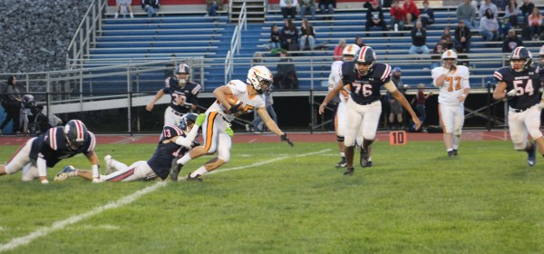 The Tyrone Golden Eagles survived a scare against Huntingdon at War Vets Field on Friday, topping the Bearcats 14-6 to remain undefeated at 5-0. While